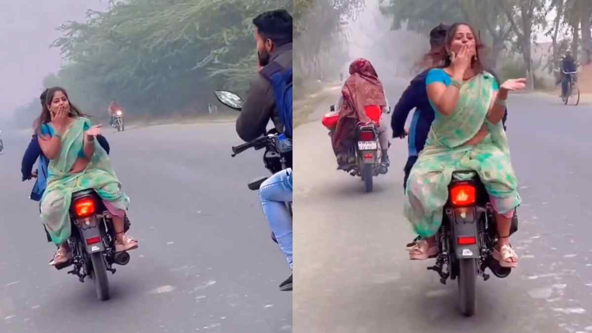 Viral Video: ना नंबर प्लेट और ना ही हेलमेट, बाइक पर उल्टी बैठी लड़की ने दिया फ्लाइंग Kiss